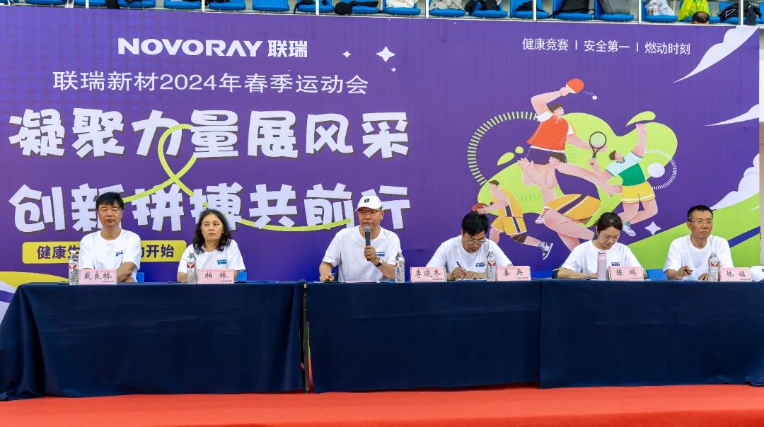 公司董事长李晓冬先生为运动会开场致辞,,,,,并宣布“pg赏金女王新材2024年春季运动会正式最先!”